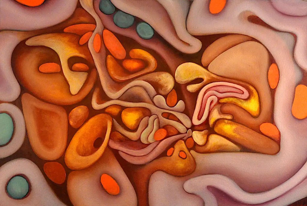 I figured that for this session, it would probably be a good idea to resolve a few of the essential elements of the thing. I put in many of the shadows and darks with Sennelier’s alizarin crimson, worked in the wishbone, rib cage and whatever those other bones are with Sennelier’s Naples yellow, worked out the intestines a little further with alizarin and naples yellow and clarified a few elements with Winsor Newton’s scarlet vermilion.