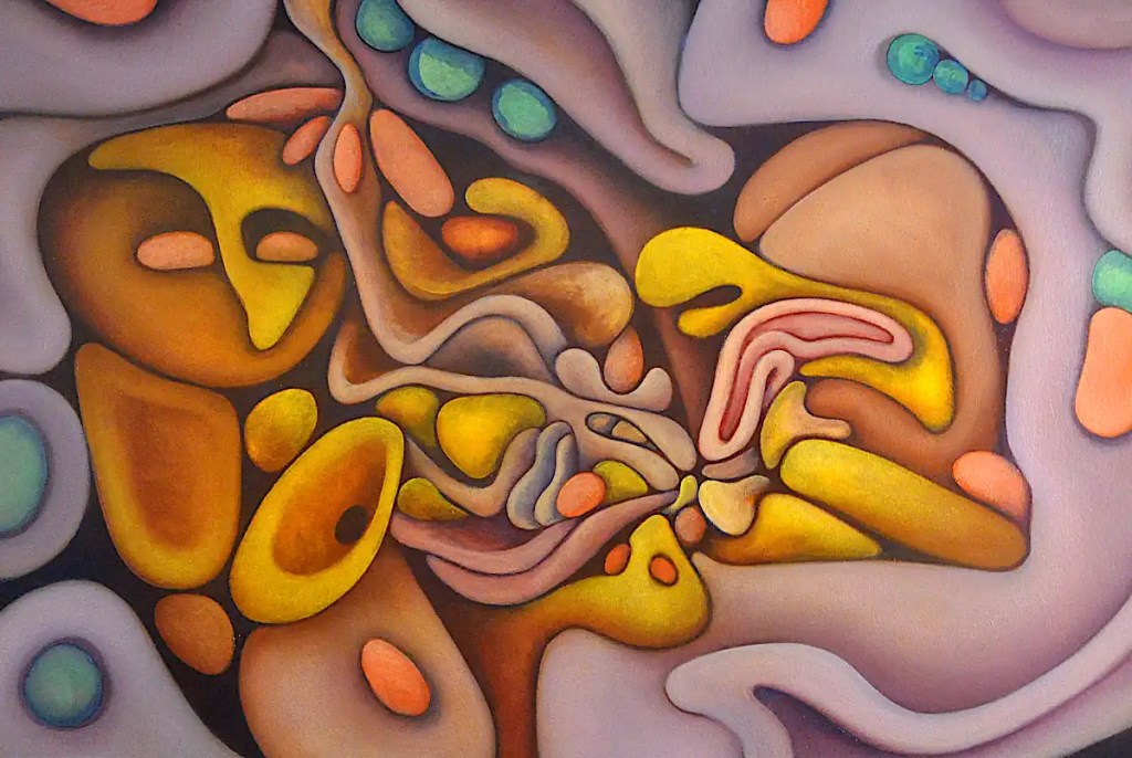 I painted in the background and a few of the outlines with Sennelier’s cobalt blue and added a few shadows here and there with it. I blended some of Winsor Newton’s cobalt violet into the purple forms to give things a bit more saturation and define them a little more.