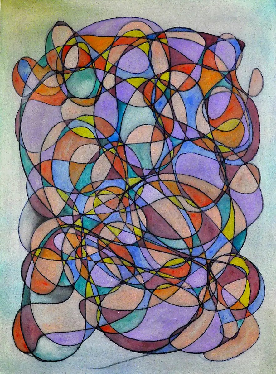 Of course, I’ve started out with an automatic drawing. The colors in the sketch are just whatever tubes I had of Open Acrylics that were the least used. It gives me an idea of tones and colors to use to develop things and clarifies a few of the areas in which there are a lot of lines… keeps them from getting lost in the process.